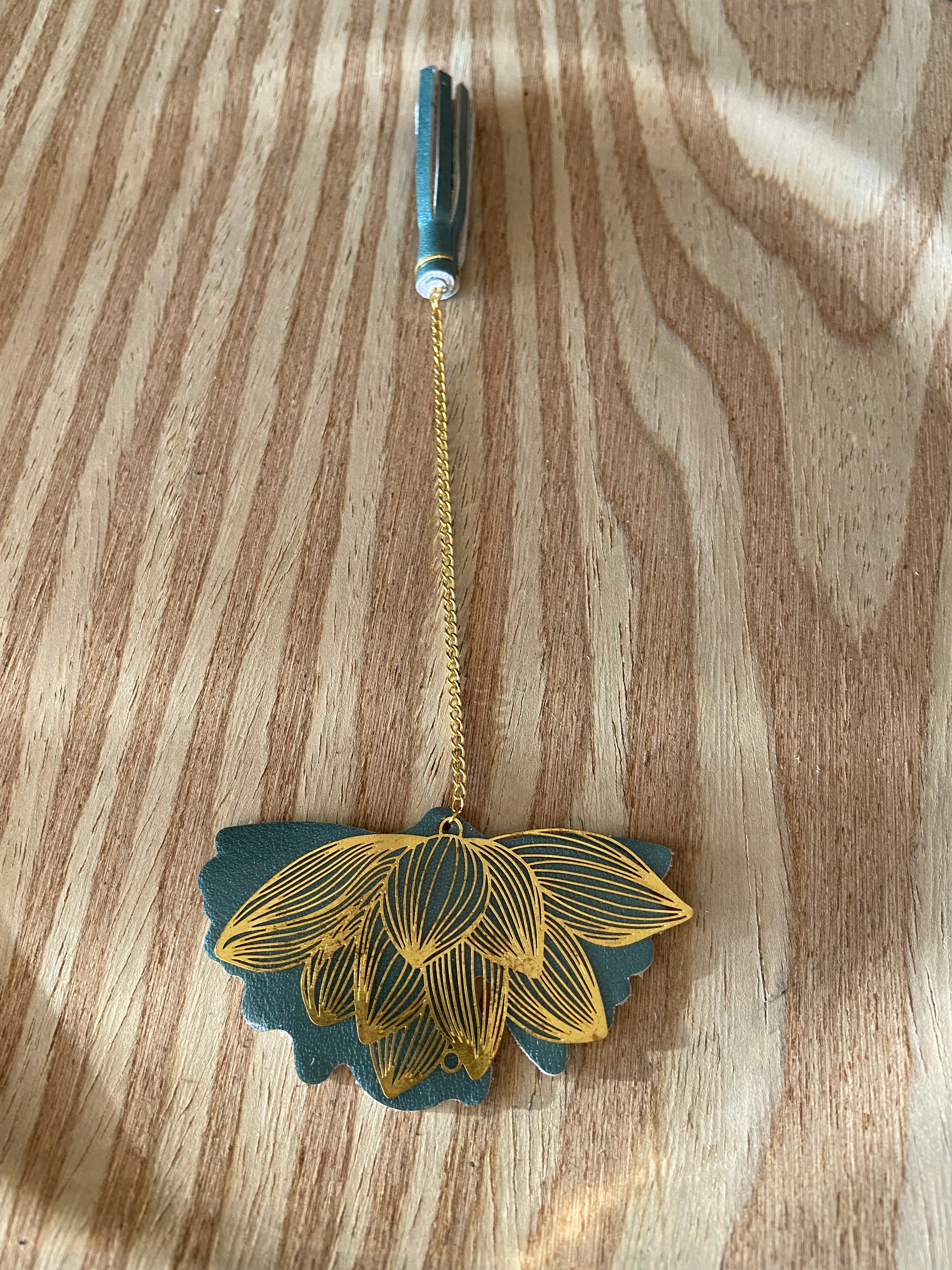Marque-pages gincko bleu vert